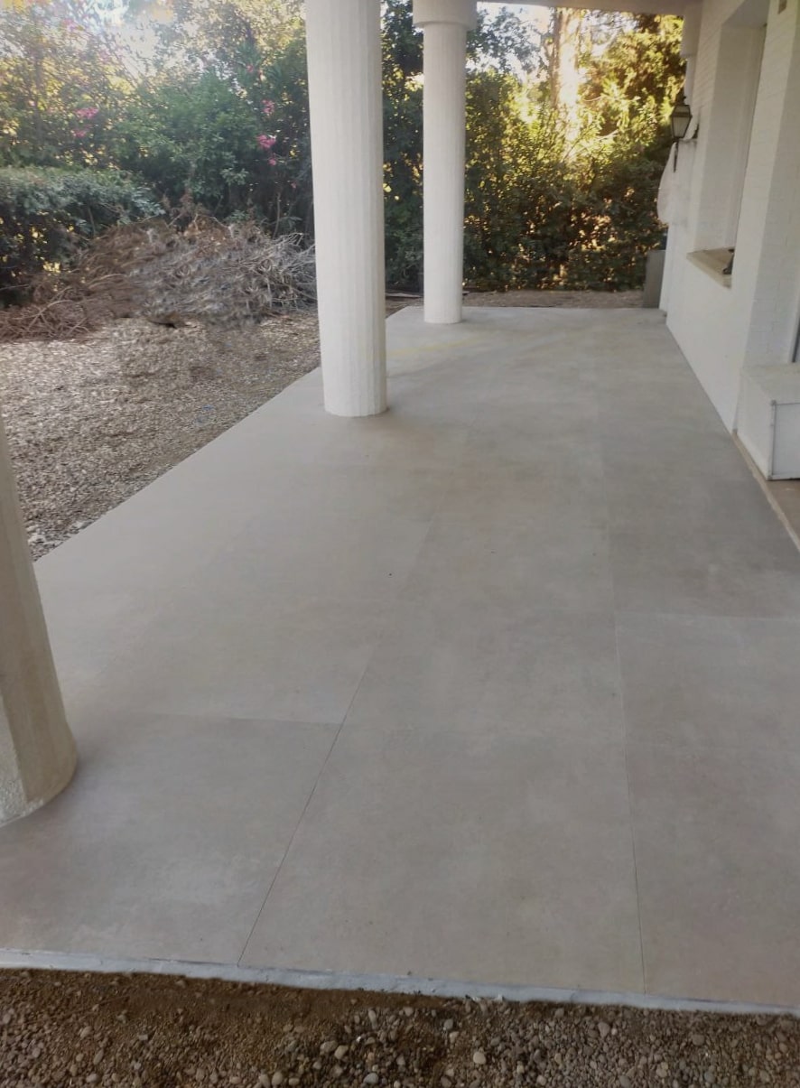 Suelos porcelánicos de gran formato en interiores y exteriores.